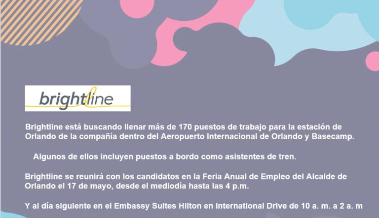 Noticias May 13, 2023by luis luis Brightline 170 vacantes de trabajo para la estación de Orlando Read More