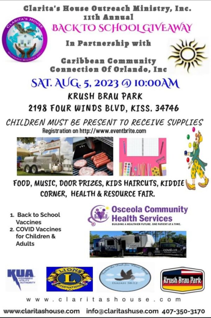 Clarita’s House Outreach Ministry Back to school giveaway Aug 5 2023