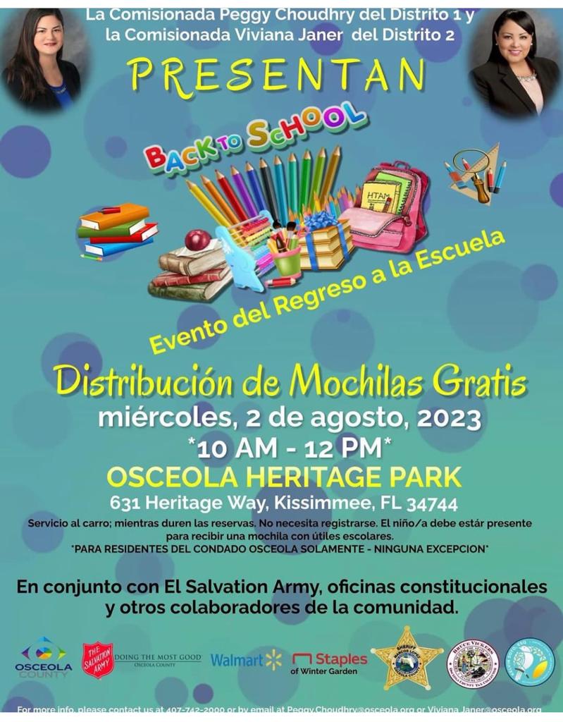 Distribución de mochilas gratis miércoles 2 de agosto 2023 Kissimmee FL