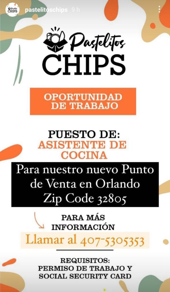 Oportunidad de trabajo puesto de asistente de cocina