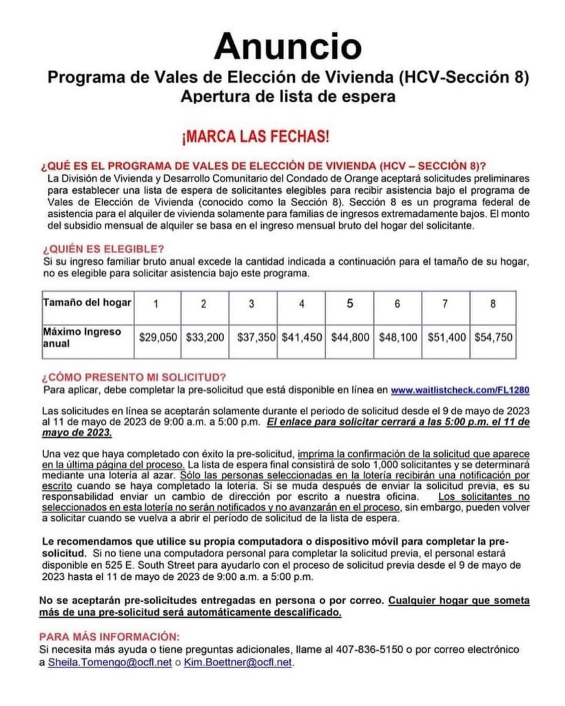 Programas de vales de elección de vivienda (HCV-Seccion 8)